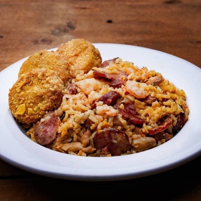 Tradicional de New Orleans, prato cremoso com Arroz, frango, linguiça, camarão e vegetais. Jambalaya é a fusão da cultura espanhola, africana e francesa.