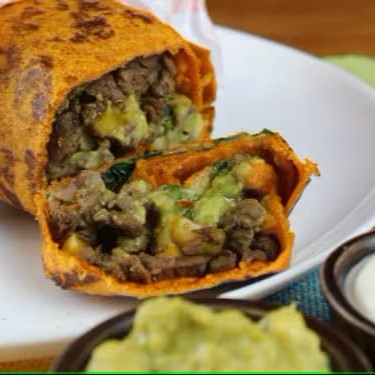 Tortilhas de trigo grelhadas, recheadas com delicioso risoto mexicano, feijão, guacamole, sour cream, e queijos.