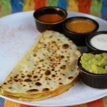 Tortilha de trigo grelhada, recheada com delicioso risoto mexicano, feijão, sour cream, guacamole, pico de galo e mussarela.