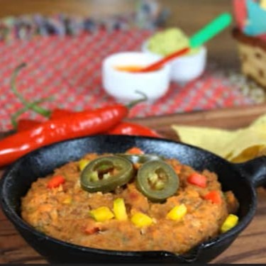 Feijão refrito com bacon, calabresa, carne especial e mussarela. Vegetariana/Vegana.