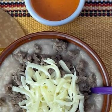 Feijão refrito com bacon, calabresa, carne especial e mussarela.
