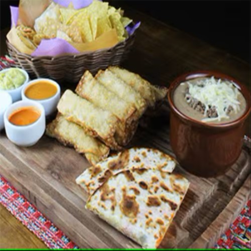 02 Tacos da Villa + 01 Quesadilha de queijos + 06 Flautas crocantes salgadas.