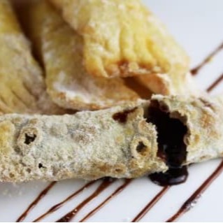 Tortilha recheada com chocolate (Branco/Amargo / Ao leite) coberta com geleia de pimenta.