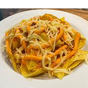 500gr de feijão chilli + 180gr de nachos (trigo/milho) + carnes especiais + cheddar + mussarela.