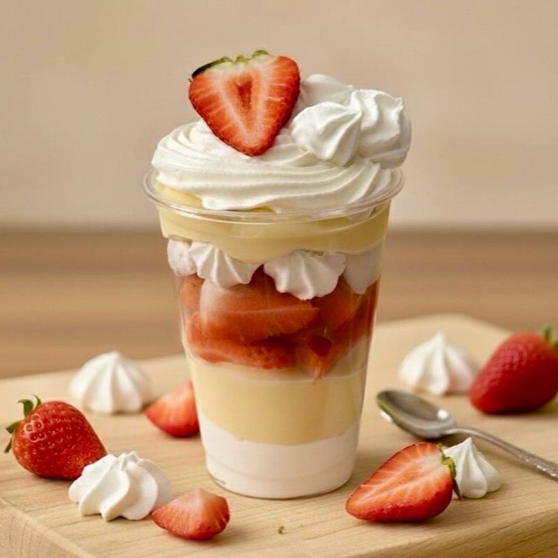 Montado no copo de 250ml - Camadas de chantininho suave, brigadeiro cremoso de Ninho, morangos frescos picados e suspiros crocantes, finalizados com mais chantininho aerado. A combinação perfeita entre o doce, o cremoso e o frescor dos morangos, simplesmente irresistível!