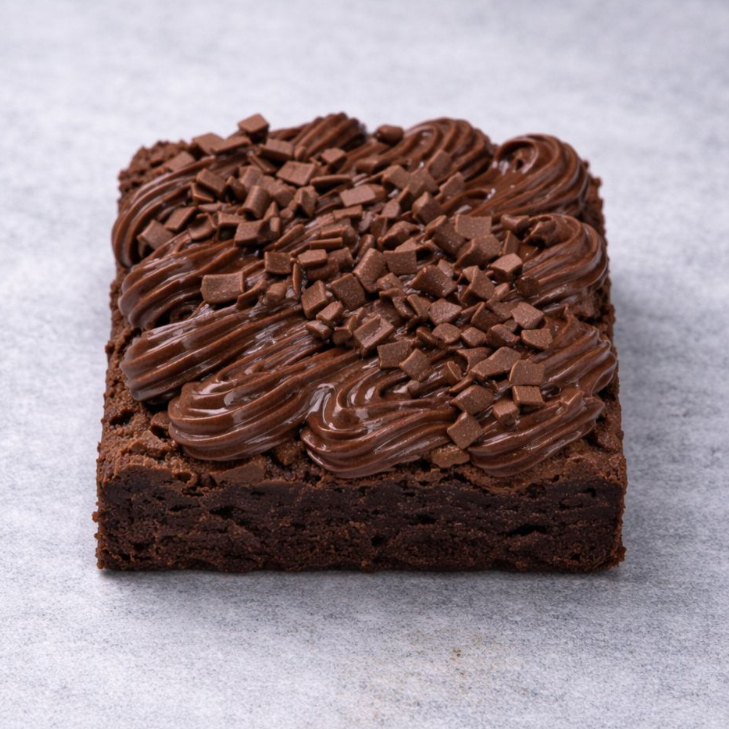 Pedaço de brownie coberto com brigadeiro de chocolate tradicional e finalizado com granule