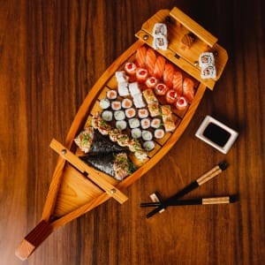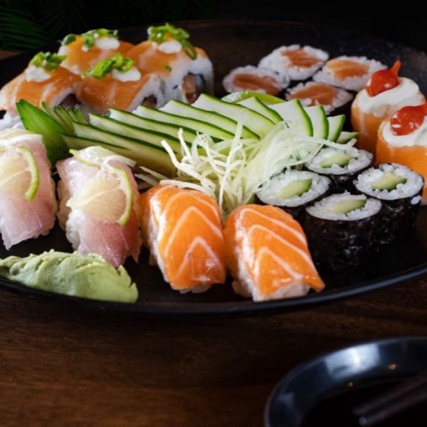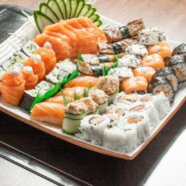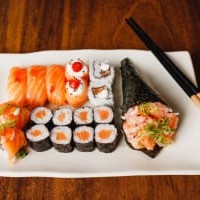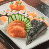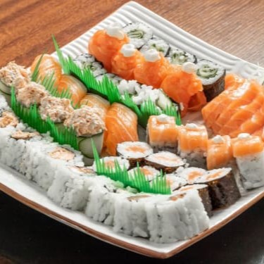 8 Hosomaki Salmão, 8 Hosomaki Pepino, 8 Uramaki Salmão, 8 Filadélfia, 8 Futomaki, 8 Uramaki Grelhado, 8 Niguiri (Acompanha 2 Hashis E 5 Sashe De Shoyu)