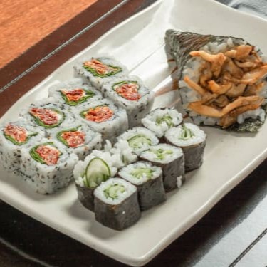 8 Uramaki Rúcula/Tomate Seco, 8 Hosomaki Pepino, 1 Temaki Shimeji (Acompanha 1 Hashi E 3 Sashe De Shoyu)