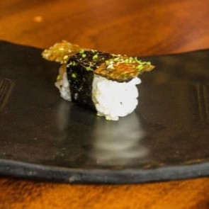 Arroz, Alga, Pele De Salmão Empanado E Frito (Acompanha 1 Hashi 2 Sashe De Shoyu)
