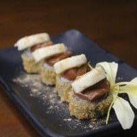 Arroz, Alga, Banana Empanada E Frita Com Recheio De Doce De Leite (Acompanha 1 Hashi )