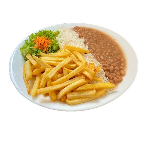 Delicie-se com a nossa Batata Frita P, um prato da categoria 'Opções Econômicas P'. Uma combinação irresistível de batatas fritas crocantes e douradas, acompanhadas de um arroz soltinho e perfumado, juntamente com o nosso feijão caseiro, cuidadosamente temperado. Para finalizar, um ovo frito suculento, com a gema perfeita, que agrega sabor e textura a este prato. Uma opção econômica, mas sem abrir mão da qualidade e do sabor.