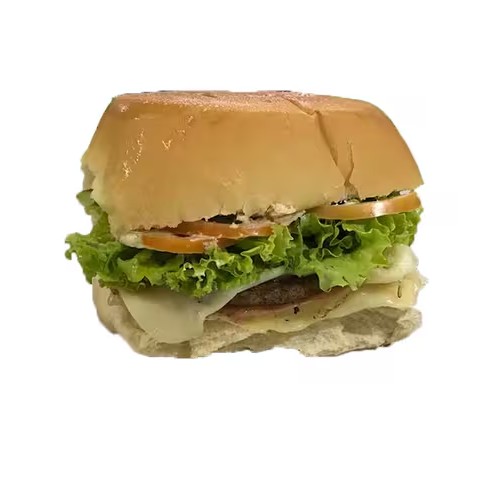 Elaborado com pão macio e fresco, nosso hambúrguer é satisfatoriamente suculento e é harmoniosamente combinado com o queijo derretido que proporciona um sabor irresistível. A fatia de presunto adiciona uma nota perfeita, enquanto o molho de alho, com seu sabor marcante, enaltece todos os sabores presentes. Para completar, acrescentamos tomate fresco e alface crocante, que trazem leveza e equilíbrio a este delicioso lanche. Não perca essa experiência gastronômica única!