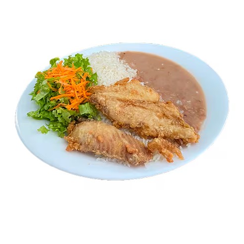 Saboroso Filé de Tilápia, acompanhado de um arroz soltinho e repleto de sabor. O feijão, preparado com tempero caseiro, traz aconchego ao prato, enquanto a farofa, crocante e bem temperada, adiciona uma textura deliciosa. A salada de alface e cenoura, fresca e crocante, equilibra o prato com sua leveza e frescor. Uma marmitex média perfeitamente equilibrada para satisfazer o seu paladar.