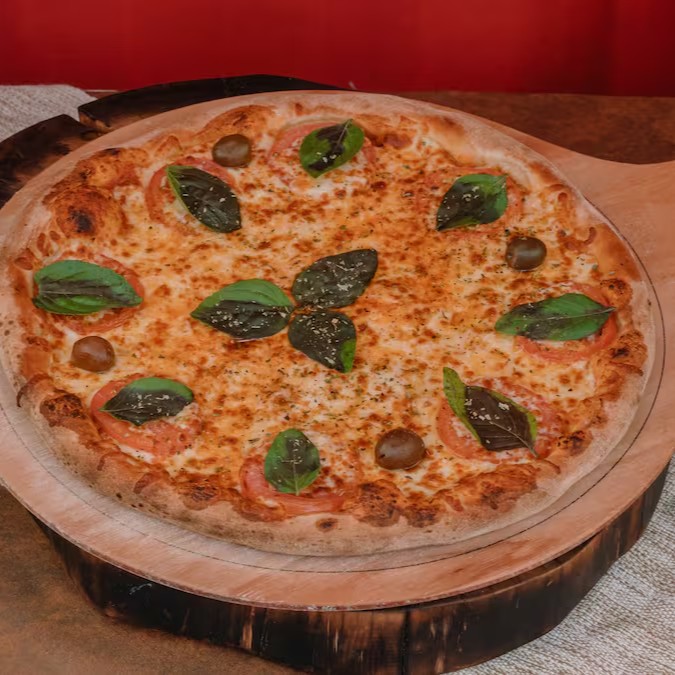 Pizza marguerita Tradicional 8 pedaços. (Tags não inclusas: Pizza Piza Pizzaria Pizaria Baby Broto Brotinho Combo Família Para o Dia dos Namorados Mães Pais Natal Pascoa Verão Inverno Refeição completa Massa Artesanal Fermentação Lenta Forno Esfirra Esfiha a Lenha Gourmet Napolitana Receita Italiana Fogazza pizza dobrada frita Fogaça fougasse foccacia Calzone panzerotto)