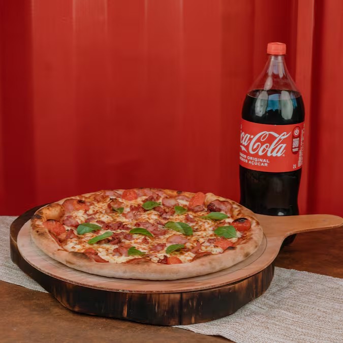 Saboreie nossa Pizza Grande, esbanjando em oito fartas fatias, onde a personalização é toda sua, com a opção de escolher até dois sabores distintos, prometendo uma aventura culinária exclusiva e variada. Acompanhada de uma Coca-Cola 2l, extra gelada, que você leva para casa pela metade do preço. Nossa pizza é meticulosamente elaborada com ingredientes de altíssima qualidade, que enaltecem o sabor e refinam o prato. Cada fatia é abundantemente revestida com um genuíno molho de tomate italiano artesanal, azeitonas pretas selecionadas e desprovidas de caroço, finalizadas com um toque especial de orégano. Não perca essa oferta irresistível, perfeita para os amantes de pizza!