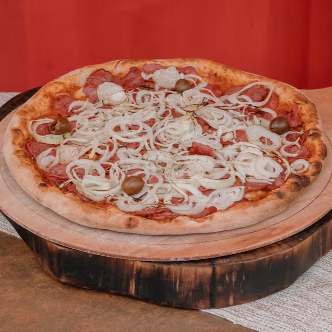 Molho de Tomate Italiano, Calabresa Artesanal Fatiada e Cebola. ( SEM MUSSARELA)
