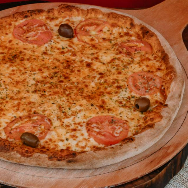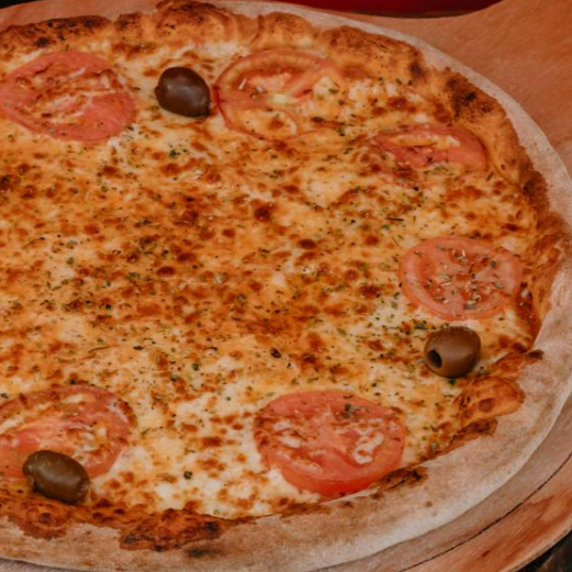 Pizza composta por molho de tomate artesanal , bastante queijo mussarela derretido e rodelas de tomate, 8 pedaços. (Tags não inclusas: Pizza Piza Pizzaria Pizaria Baby Broto Brotinho Combo Família Para o Dia dos Namorados Mães Pais Natal Pascoa Verão Inverno Refeição completa Massa Artesanal Fermentação Lenta Forno Esfirra Esfiha a Lenha Gourmet Napolitana Receita Italiana Fogazza pizza dobrada frita Fogaça fougasse foccacia Calzone panzerotto)