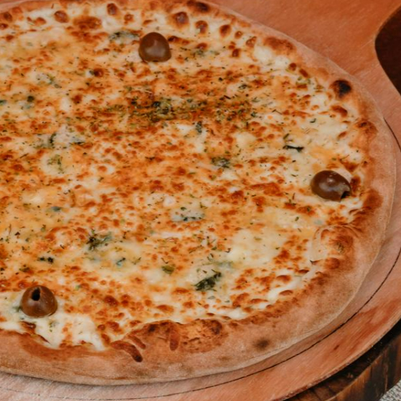 Pizza quatro queijos 8 pedaços. (Tags não inclusas: Pizza Piza Pizzaria Pizaria Baby Broto Brotinho Combo Família Para o Dia dos Namorados Mães Pais Natal Pascoa Verão Inverno Refeição completa Massa Artesanal Fermentação Lenta Forno Esfirra Esfiha a Lenha Gourmet Napolitana Receita Italiana Fogazza pizza dobrada frita Fogaça fougasse foccacia Calzone panzerotto)