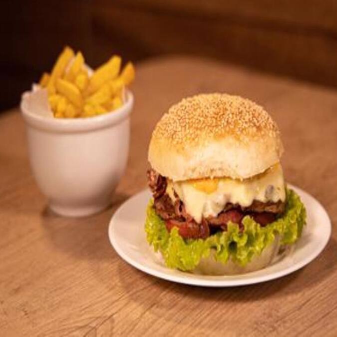 Hamburguer, queijo, salada e ovo