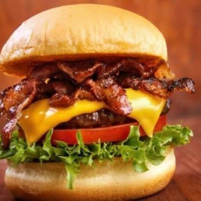 Hambúrguer, bacon frito e mussarela