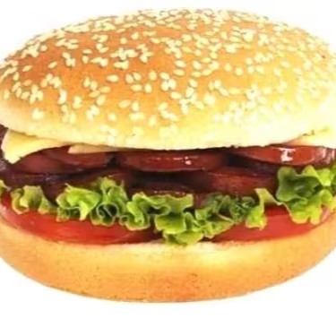 Pão hambúrguer, hambúrguer, mussarela, maionese, alface e tomate