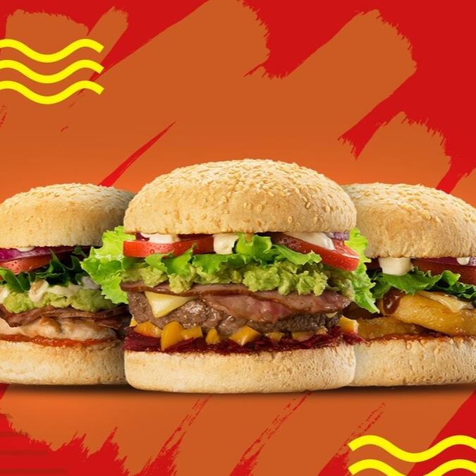 Hambúrguer, frango, calabresa, presunto, ovo, bacon frito, maionese, alface e tomate