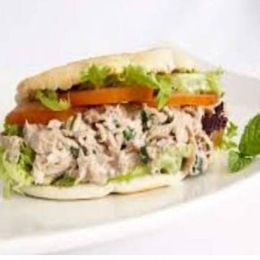 Pão de beirute, bacon frito, ovo, atum ralado, presunto, mussarela, alface, tomate e maionese