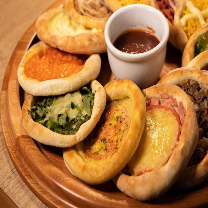 Atum ralado, carne moída, mussarela, frango desfiado, calabresa, Catupiry, palmito, presunto e ovo