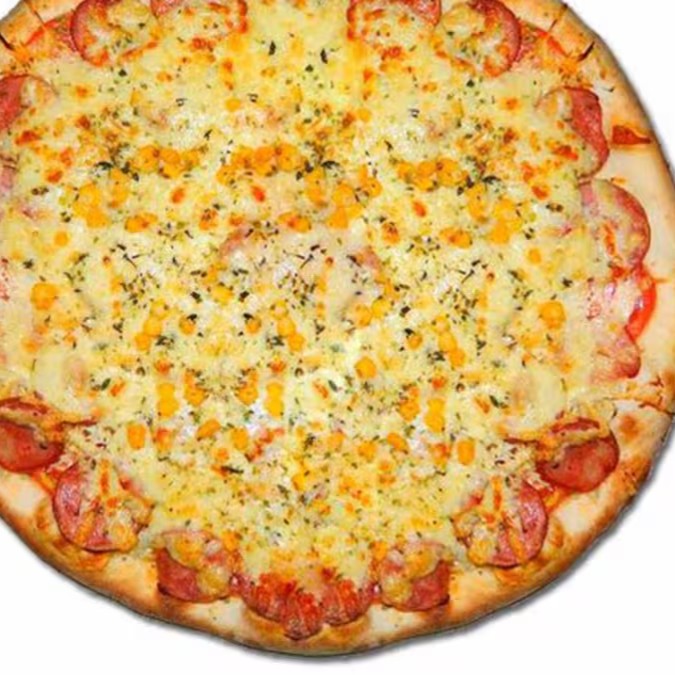 Molho, presunto, calabresa, frango, tomate, cebola e mussarela.