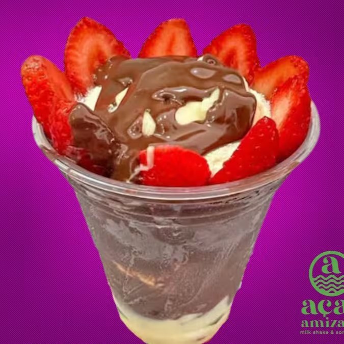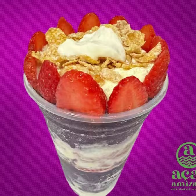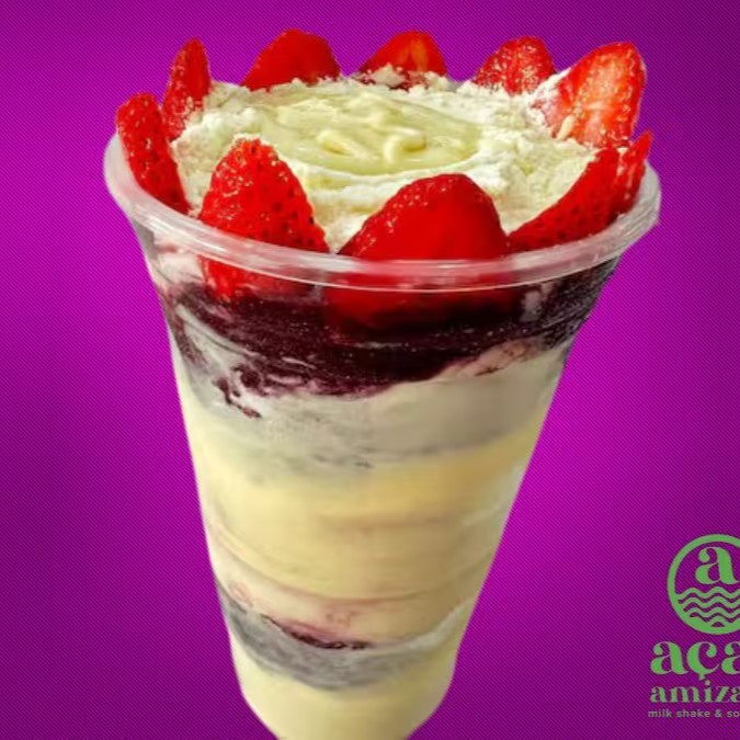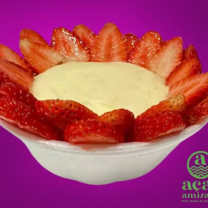 Delicioso e cremoso açai com leite condensado e Morango, ideal para qualquer hora do Dia.