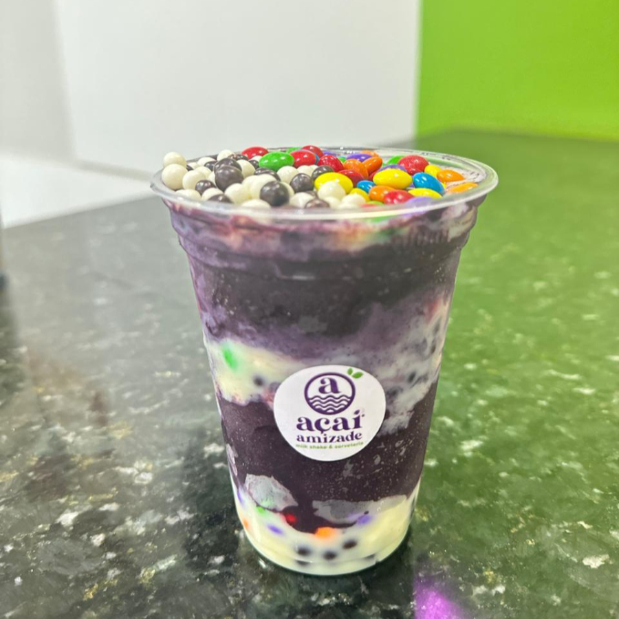 Delicioso e cremoso açai com leite condensado ,confete e chocoball, ideal para qualquer hora do Dia.