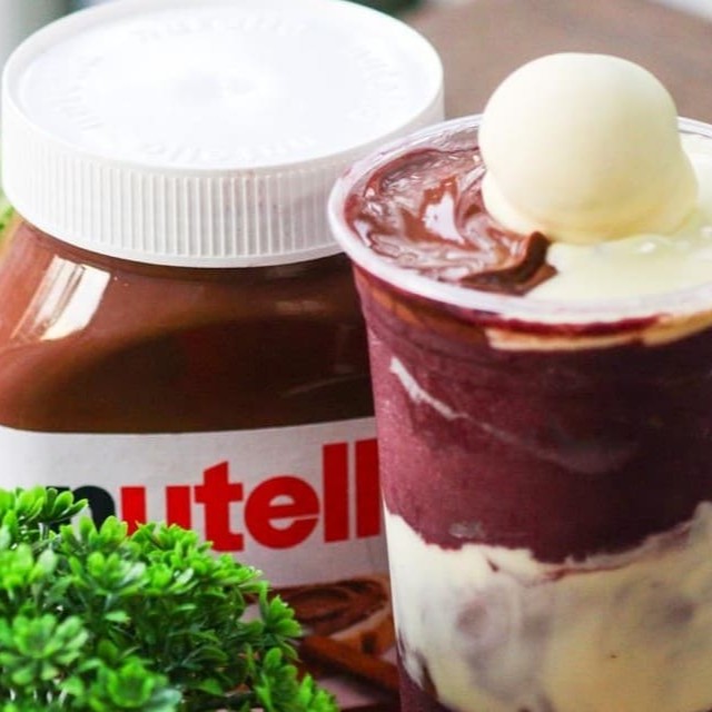 Açaí premium 100% fruta 550 ml, acompanhado do sabor irresistivel da Nutella, rodiado do nosso delicioso creme de Ninho com a crocancia do bombo Ouro Branco!