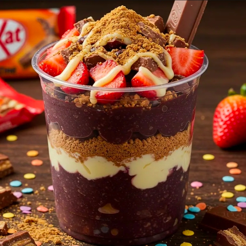 Açaí 500ml Com Morango + Kitkat + Paçoca + Leite Ninho + Leite Condensado.