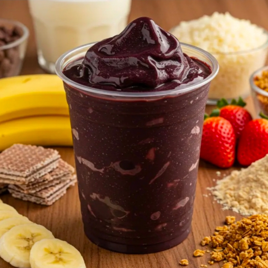 Açaí, Banana, Morango, Paçoca, Leite Condensado.