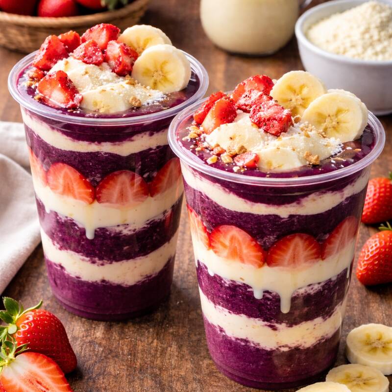 Açaí, Morango, Banana, Leite Condensado, Leite Ninho.