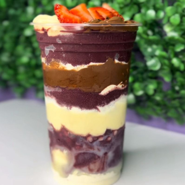 Açaí no Copo 300ml – (Granola + Leite Condensado+ Leite Em Pó) Açaí refrescante e cremoso, acompanhado pela crocância da granola, a doçura irresistível do leite condensado e o toque suave do leite em pó. Uma explosão de texturas e sabores para qualquer momento do Dia!