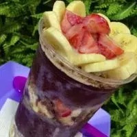 Açaí de 400ml com Morango, Leite Condensado, Leite em Pó, Banana e Nutella.