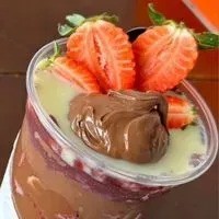 Acompanha Banana, Leite Condensado, Leite em Pó, Granola, Morango Creme de Avelã.