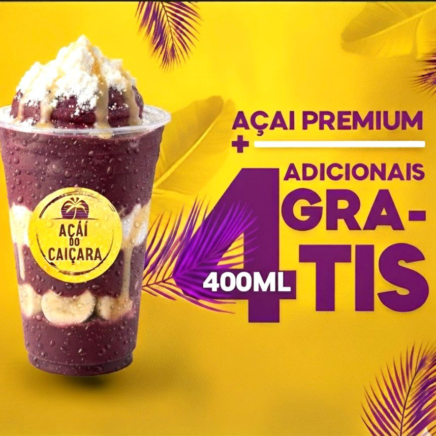 Delicioso copo de açaí cremoso com direito a 4 acompanhamentos de sua escolha.