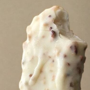 Picolé de leitinho com casquinha de chocolate branco e cookies.