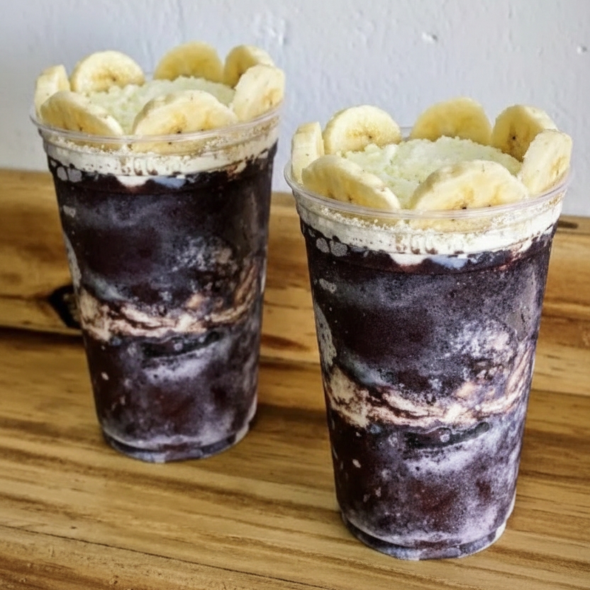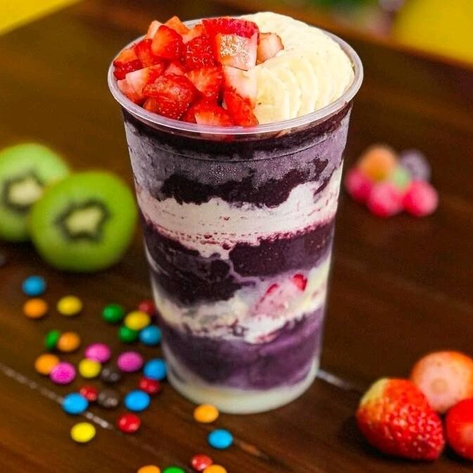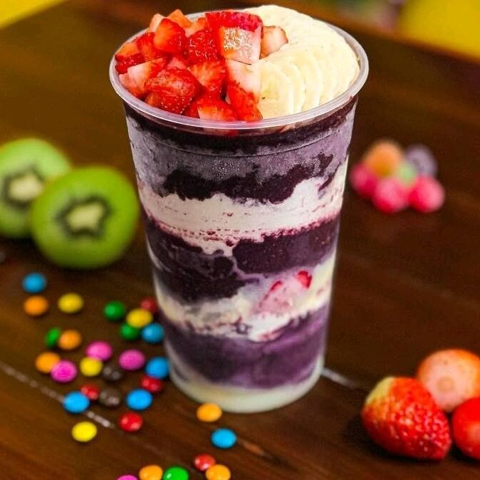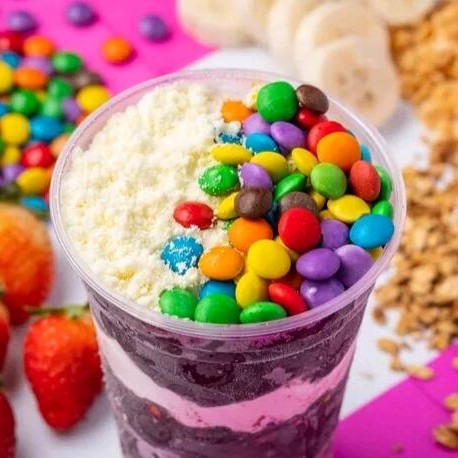 Açai batido com leite e leite condensado mais 2 acompanhamentos a sua escolha pra ficar ainda mais irresistivel