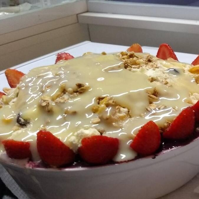 Açaí, Banana, Leite em Pó, Leite Condensado, Guaraná em Pó, Aveia e Granola