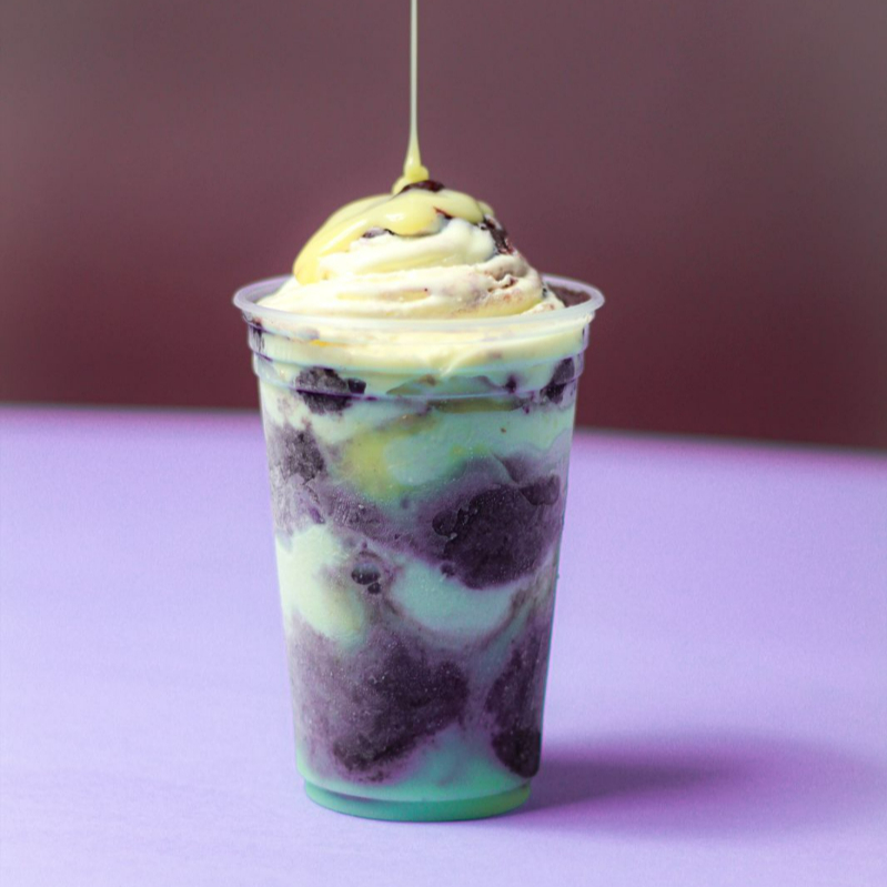 São 2 deliciosos copos de Açai de 400ml acompandos de: Banana, Paçoca, leite em pó e leite condensado.