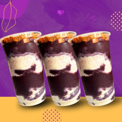 São 3 deliciosos Açaí cremoso de 400ml recheado de Leite em pó, Leite condensado e Paçoca