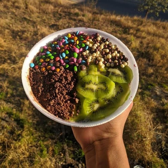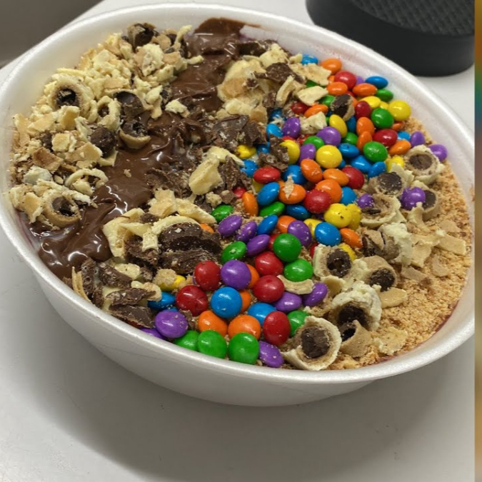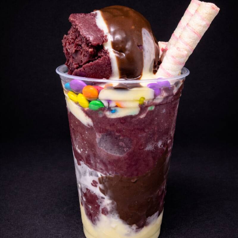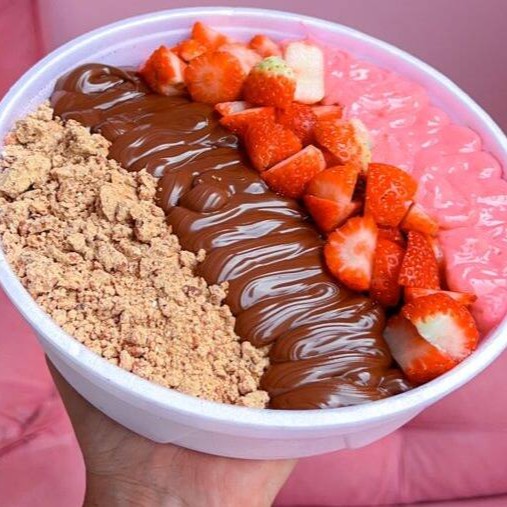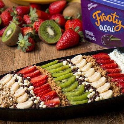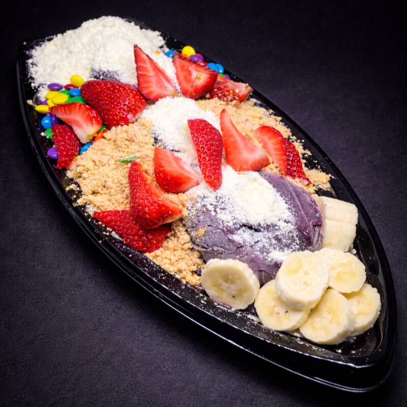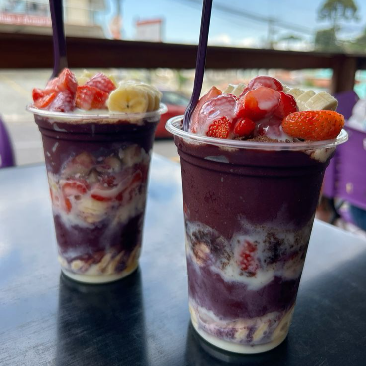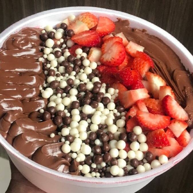 Paçoca, Leite em Pó Ninho, Açaí e Leite Condensado.