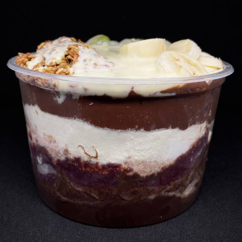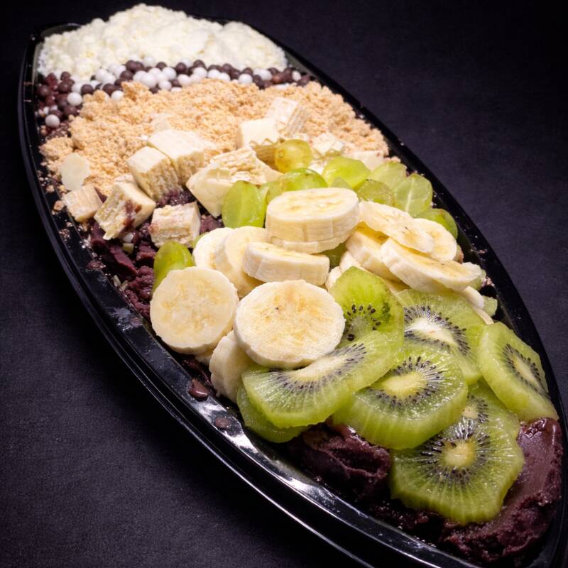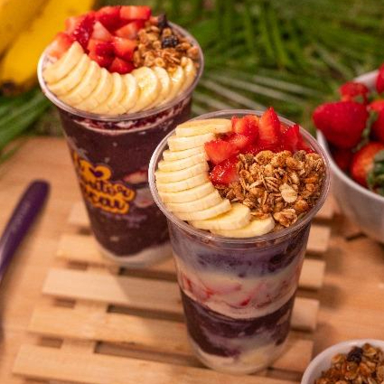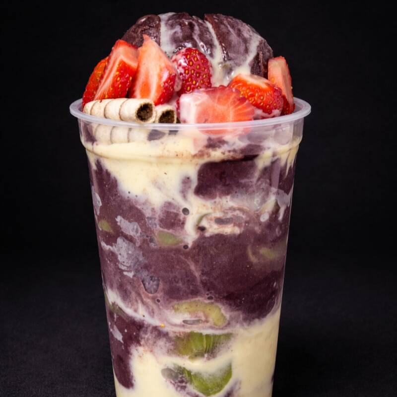 Banana, Leite em Pó Ninho, Açaí e Leite Condensado.