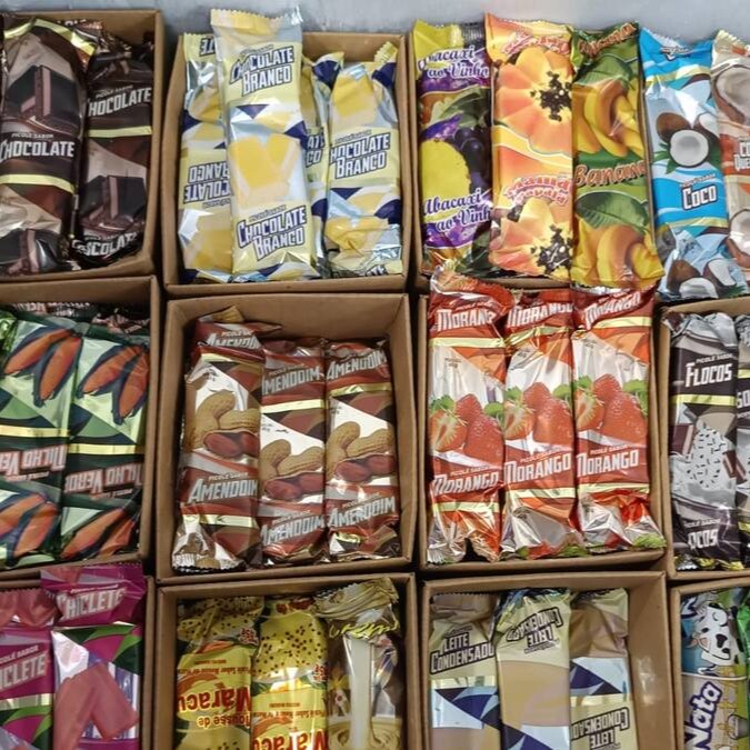 **Linha Tradicional: Morango, Chocolate, Ovomaltine, Flocos, Kinder Ovo e Abacaxi ao Vinho.** **L