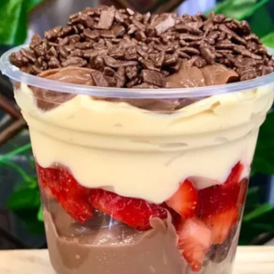 Uma sobremesa irresistível com camadas cremosas de puro sabor! Escolha seus ingredientes favoritos e aproveite. ***imagem ilustrativa