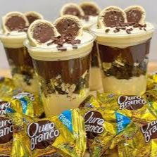 copo de 300ml com recheio dois amores e morangos frescos.