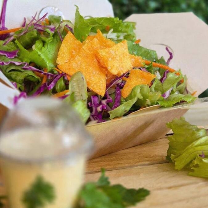 Salada Nacho Ranch: crocância dos nachos, frescor das folhas e o molho ranch que faz toda a diferença!